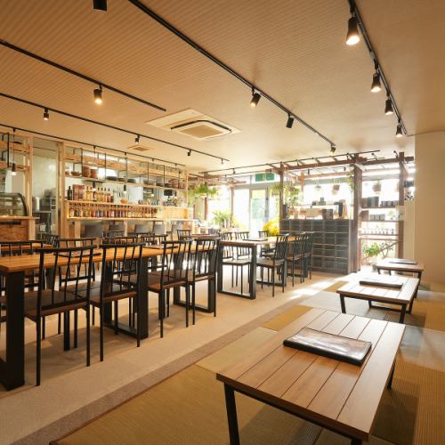 観葉植物の緑とお洒落な雑貨が心地よい癒やしの空間を創り出しています。手作りの温もりを感じる小物を眺めながら、ゆったりとした時間をお過ごしください。女子会に最適な、心落ち着く特別な場所!